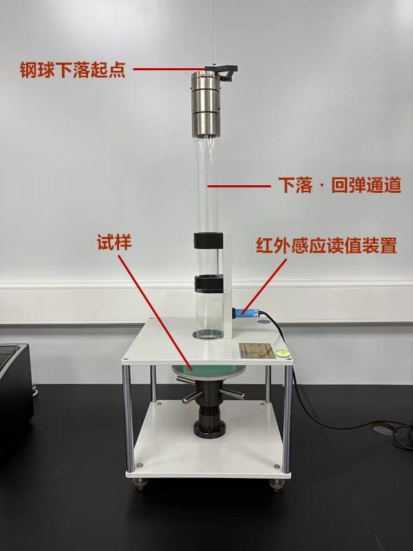 落球法的本質,是通過鋼球從固定高度下落、反彈的過程,量化泡沫材料吸收并釋放能量的能力。其測量設備,包含固定內徑的下落-回彈通道、標準鋼球、紅外感應讀值裝置等核心部件。