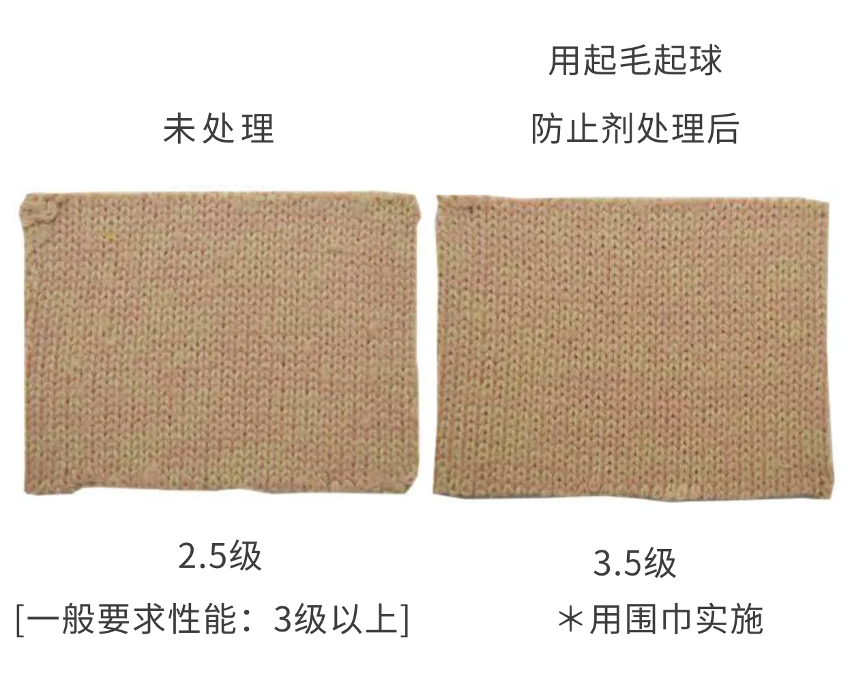 - 利用起毛起球防止劑進行加工等,提高起毛起球性能(需要注意手感等方面的變化[面料變硬等])。