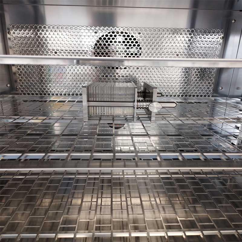 將組合試樣(試樣和兩種添付白布縫合在一起的狀態)夾在兩片平整的鋼板之間,放入汗試驗架中,施加約45N的壓重。將汗試驗架放入120℃±2℃的恒溫干燥機內,熱處理80分鐘。熱處理完成后取出組合試樣,待其自然冷卻。將試驗后的試樣和貼襯織物分別與評定變色用灰色樣卡或評定沾色用灰色樣卡進行對比,評定等級。