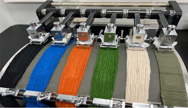 調查面料是否會因家庭洗滌時使用的自來水中含有的氯,或者游泳池消毒時使用的氯導致顏色變化而進行的試驗檢測。棉通常會使用的反應染料和直接染料,由于容易因氯而發生變色,所以需要特別注意。