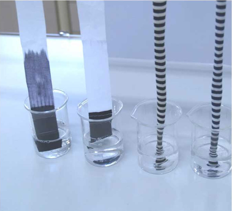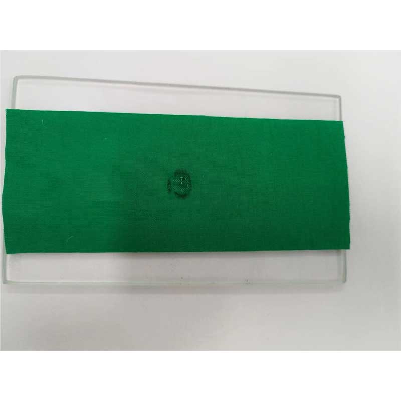 將濃度為0.05%的非離子界面活性劑試驗液放入燒杯中,試驗片前端2cm浸于溶液里放置2小時;試驗結束后將試驗片從試驗液中取出,自然干燥,看試驗片的白色和淺色以及添付白布的污染部分的污染最強部分,用評定沾色用灰色樣卡比較評定等級。