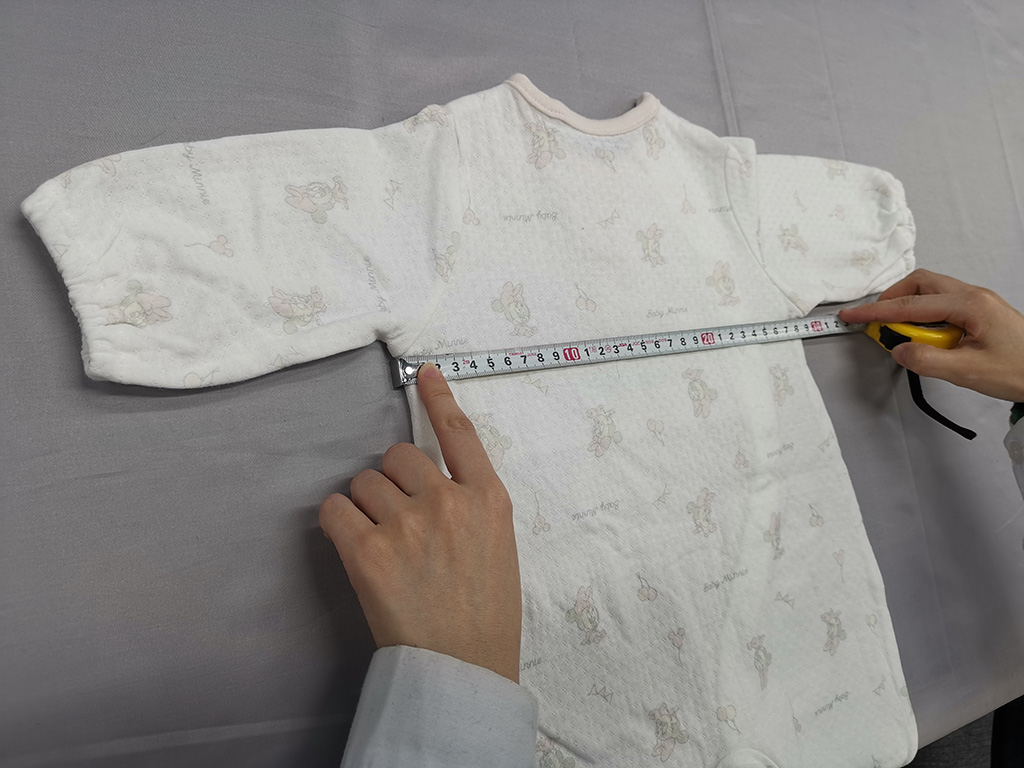 根據(jù)縫制式樣書上的尺寸指示,測(cè)量制品的實(shí)際尺寸,包括制品的機(jī)能性,也就是制品的拉伸程度。