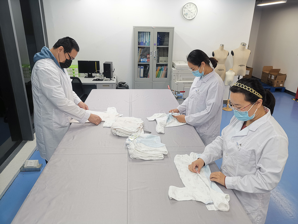 對(duì)每件制品的縫制進(jìn)行檢查。包括斷線,針眼,跳針,漏縫等各種縫紉問題的檢查。